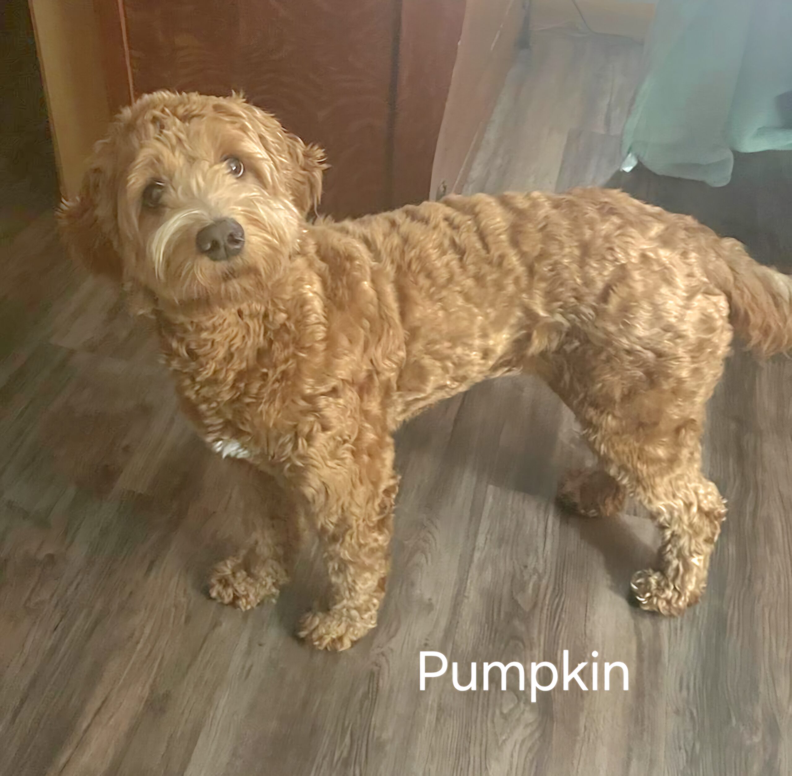 Meet Cedar Lake Doodles ” Pumpkin “. Pumpkin is a medium Multigen Goldendoodle from our sweetest girl Raeni. She is 36lbs and completely health tested.