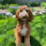 Meet Cedar Lake Doodles “Poppy”. Poppy is a F1B Petite Goldendoodle. She is 13lbs, 14 inches high, and health tested for hips, elbows, heart, eyes, patellas, DM, GR-PRA1, GR-PRA2, Ich, MD, NEwS, prcd-PRA, and vWD1.