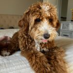 Meet Cedar Lake Doodles “Lucille” aka “Lulu”. Lulu is a Multigen Mini Goldendoodle. She is sweet as pie, just like her mom Ruby. She is 32lbs, 18 inches high, and health tested for hips, elbows, heart, eyes, patellas, DM, GR-PRA1, GR-PRA2, Ich, MD, NEwS, prcd-PRA, and vWD1.