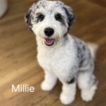 Meet Cedar Lake Doodles ” Millie “. Sweet little Millie is a Multigen Mini Goldendoodle. She is going to be around 20lbs with a rare color of blue merle tri. We can’t wait for her gorgeous, sweet babies.